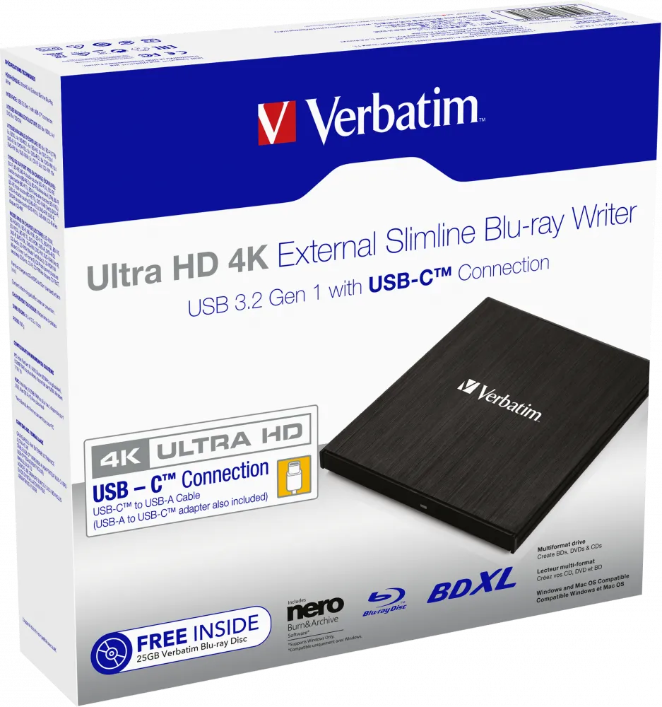 BLU-RAY WRITER VERBATIM UHD USB 3.1 + USB-C “43888” (TIMBRU VERDE 0.8 LEI)