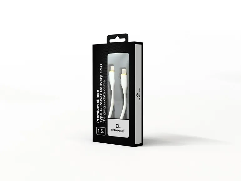 CABLU alimentare si date GEMBIRD, pt. smartphone, USB 2.0 Type-C (T) la USB 2.0 Type-C (T), 60W, 1.5m, protectie silicon, alb, “CC-USB2S-CMCM-1.5M-W” (timbru verde 0.08 lei)