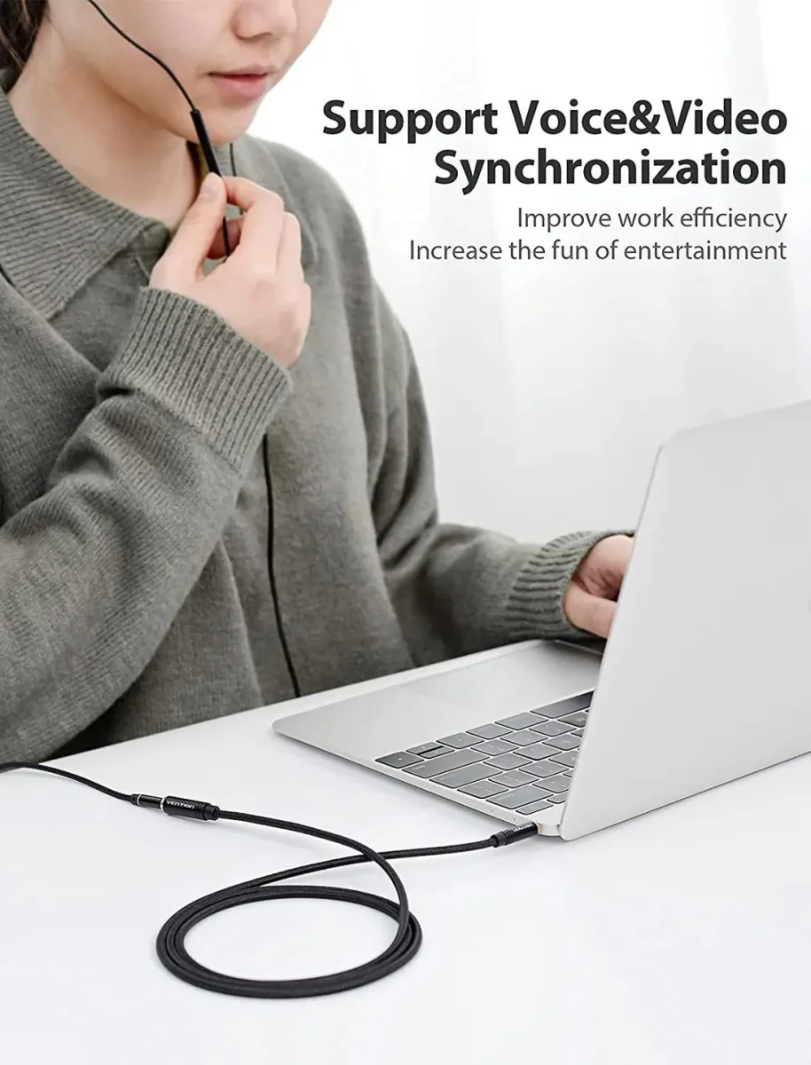 Cablu audio prelungitor Vention, Jack 3.5mm (T) la Jack 3.5mm (M), 2m, negru, “BHBBH” (timbru verde 0.08 lei)