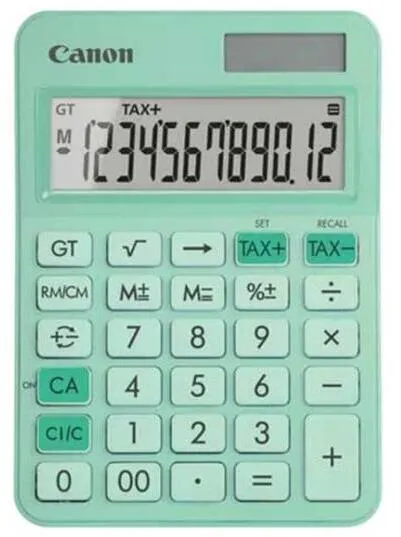 Calculator de birou Canon, LS-125KB GR, Green, LCD 12-digit, dim.car. 18.6 mm, Dual-Power (solara si baterie LR44), dim. 147x106x25mm, 117g, (incl.TV 0.80lei),”6819C001AA”