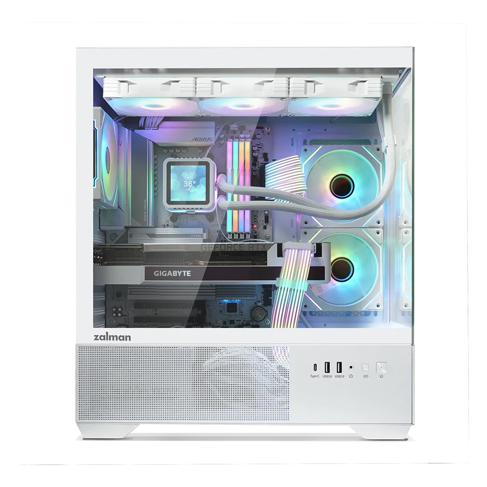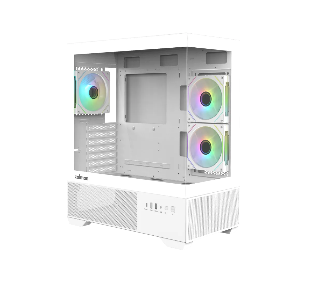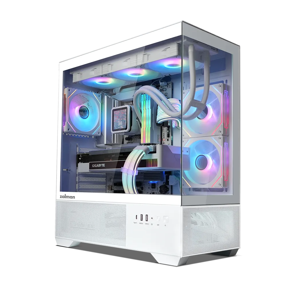 CARCASA Zalman “CHRONIX”, middle tower, gaming, fara sursa, suporta 9xfan, 3xfan inclus, PSU shroud, USB Type-C x 1, USBx2, audio+mic, 7 sloturi expansiune, alb, “CHRONIX White” (timbru verde 0.24lei)