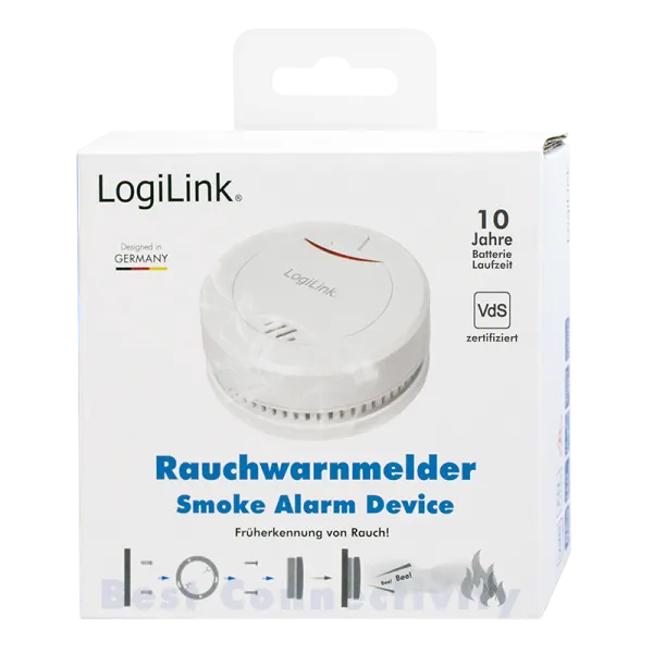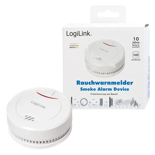 DETECTOR de fum LOGILINK, montare tavan/ perete, alarma 85 dB, buton test, baterie 3V, VdS, alb “SC0010”
