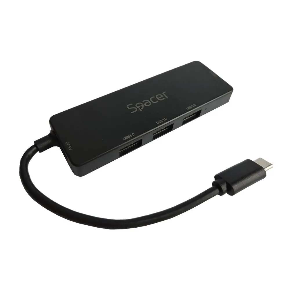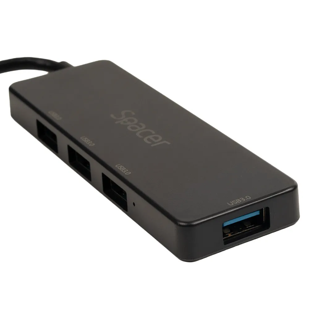 HUB extern SPACER, porturi USB:USB 3.0 X 4, 5V in (Type-C), conectare prin TYPE-C, cablu 15cm, ABS, (timbru verde 0.18 lei), “SPHB-TYPEC-4U30-09”