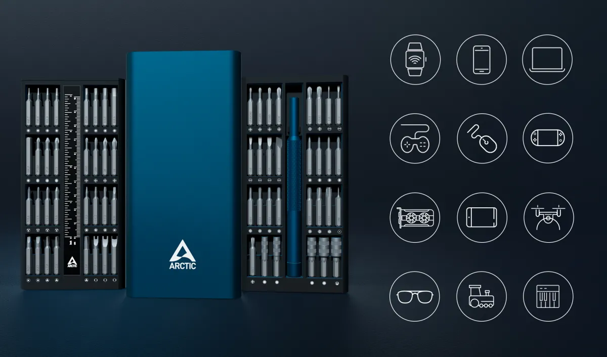 Kit surubelnita si biti de precizie Arctic, 63 piese, capete magnetice, lungime biti 28mm, cutie metalica, albastru, dimensiuni 20.8×9.1×2.7cm, “AETLS00001A” – 4895213704625