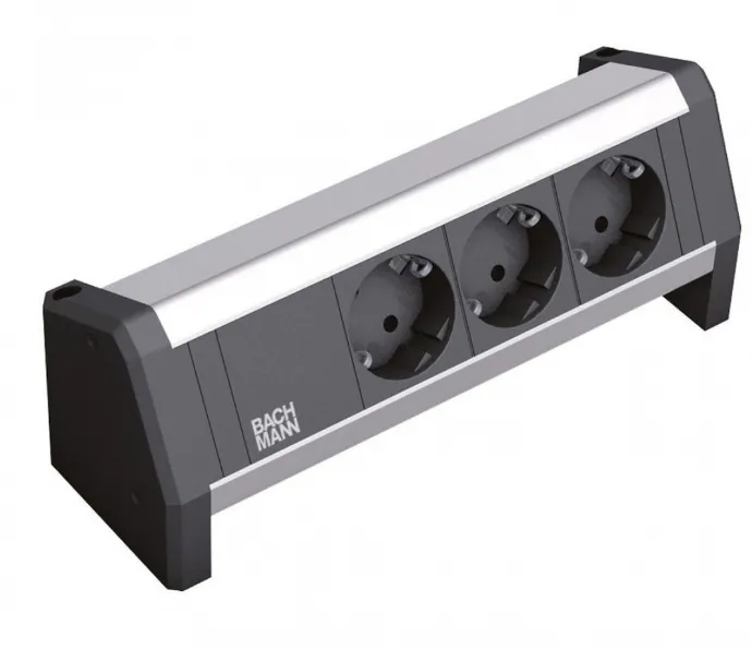 PRIZA Bachmann, Schuko x 3, conectare prin fara stecher, cablu nu e cazul, 10 A, fara protectie, negru | argintiu, “902.005” (timbru verde 0.18 lei)