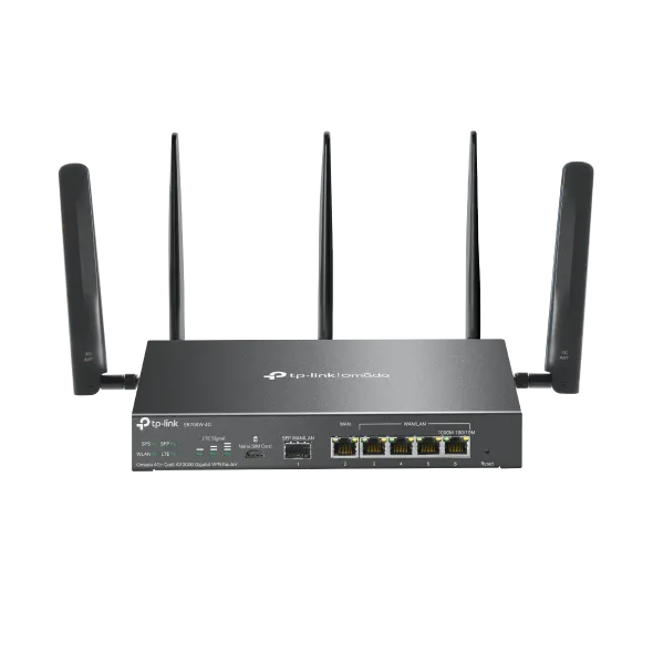 ROUTER TP-LINK VPN Gigabit, Omada 4G+ Cat6 AX3000 Dual-Band WiFi 6, 6 × Gigabit RJ45 port, 5 antene externe detasabile, “ER706W-4G” (timbru verde 0.8 lei)