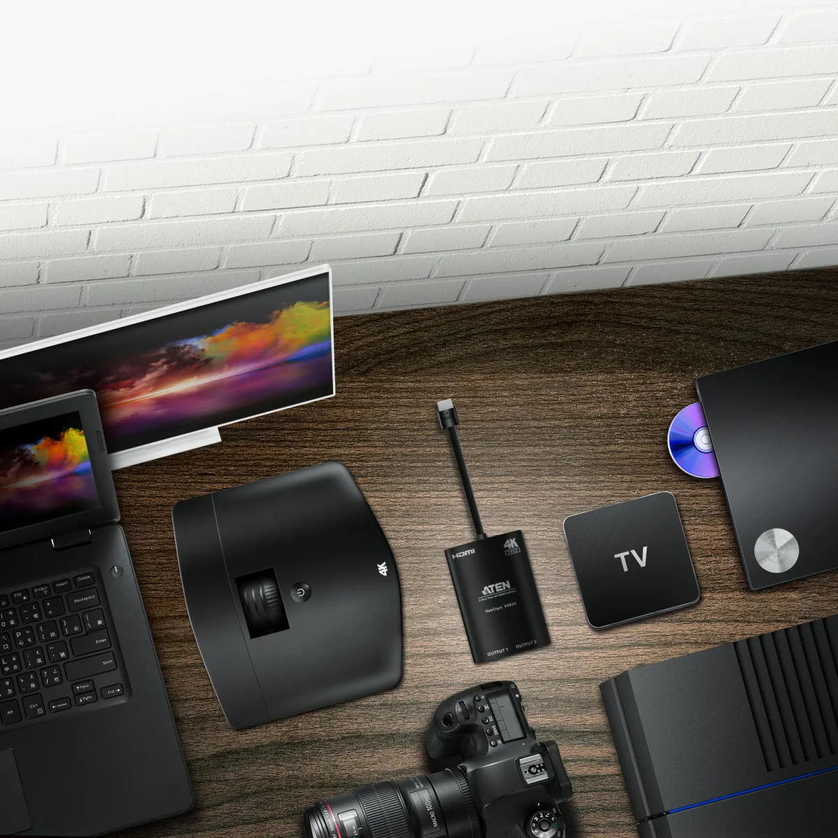 SPLITTER video ATEN, split HDMI la 2 monitoare, conector 1: HDMI (T); conector 2: HDMI (M) x 2, “VS82H-AT” (timbru verde 0.8 lei)