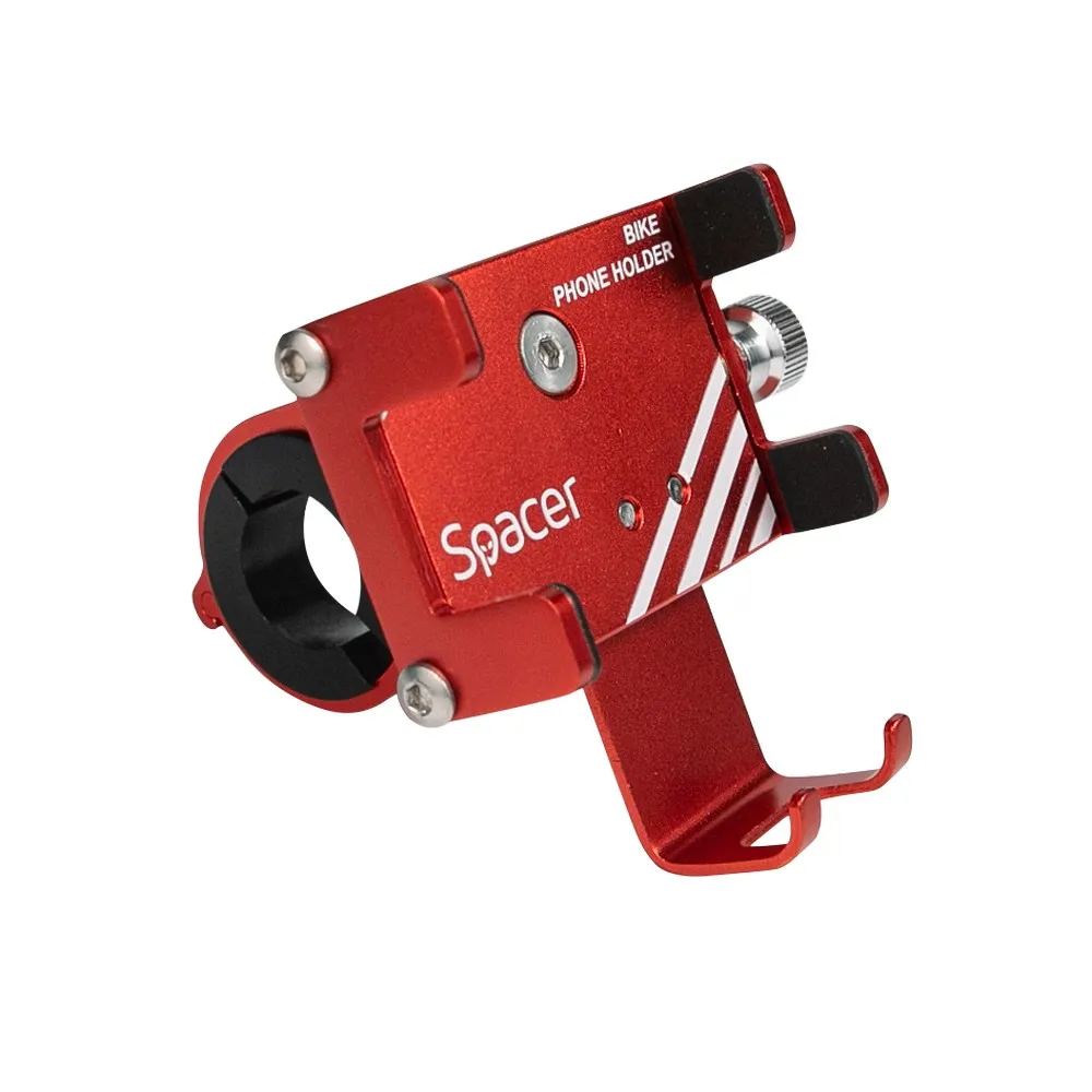 SUPORT Bicicleta SPACER pt. SmartPhone, fixare de ghidon, Metalic, rosu, cheie de montare, “SPBH-METAL-RED”