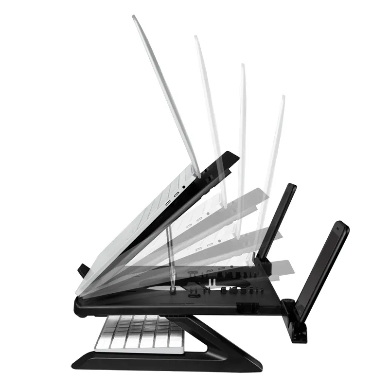 SUPORT de birou LOGILINK pt. notebook, 9 pozitii, holder pt. smartphone, suporta dimensiuni 10-15.6″, pliabil, negru, “AA0133”